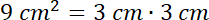 Podziel kwadrat na 5 małych kwadracików o polu 1 cm2 i 1 duży o polu 4 cm2. Sprawdź, czy podany podział jest równy polu kwadratu o boku 3 cm.