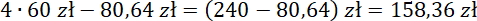 Musisz od ceny 4 biletów odjąć koszt benzyny: