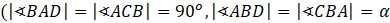 Trójkąty ABD i ABC są podobne z cechy kąt – kąt – kąt