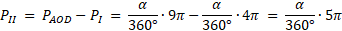 Zacznij od obliczenia pola wycinka koła AOD. Kolejno oblicz pole części I i pole części II. Pole części II oblicz odejmując od pola wycinka koła AOD pole części I. Zauważ, że pole części I nie jest większe od pola części II.