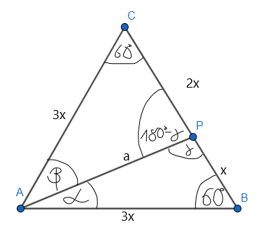 Wyznacz zależność a od x z twierdzenia cosinusów w trójkącie APC. Następnie oblicz cosinusy kątów alfa i beta z twierdzenia cosinusów. Kolejno oblicz promienie okręgów opisanych na trójkątach PAB i CAB z twierdzenia sinusów i zauważ, że są one równe.