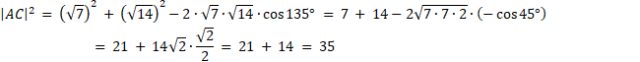 . Kolejno wyznacz miarę boku |AC| z twierdzenia cosinusów w trójkącie COA. Kolejno wyznacz miarę kąta