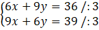 Na początku musisz oznaczyć symbolami liczbę jabłek i bananów kupionych przez Krysię. Następnie musisz zapisać pierwsze równanie, w którym cena zakupionych produktów wynosi 3,6. Drugim równaniem będzie to, że cena produktów zamienionych ze sobą ilościami 3,9.