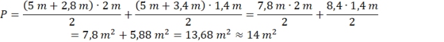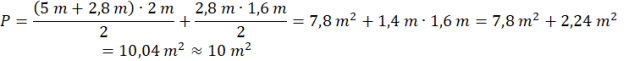 Zauważ, że przedpokój możemy podzielić na trapez i trójkąt o następujących wymiarach: