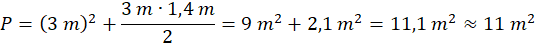 Oblicz pole powierzchni przedpokoju, dodając do pola trapezu pole trójkąta: