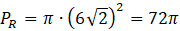 Oblicz pole większego okręgu wiedząc, że długość jego promienia jest równa połowie długości przekątnej kwadratu o boku 12 cm. Kolejno oblicz pole koła o promieniu 6 cm. Różnica pól tych kół będzie równa polu pierścienia.