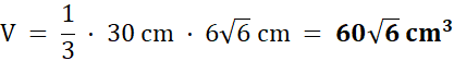 Podaj objętość ostrosłupa, wiedząc, że podstawą jest prostokąt o polu 30 cm2. Jedna z krawędzi podstawy wynosi 5 cm, druga a cm, a jedna z krawędzi bocznych ma: