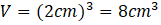 Objętość kostki o krawędzi 2 cm: