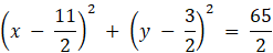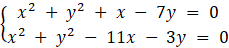 Punkty wspólne okręgów wyznaczymy, przekształcając równania okręgów do postaci ogólnej i układając z nich układ równań: