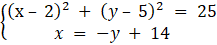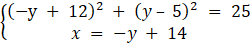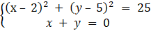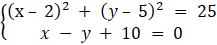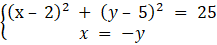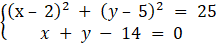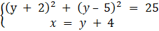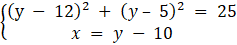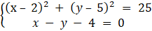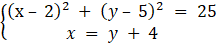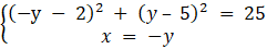 Punkty wspólne okręgu i boków kwadratu wyznaczymy, rozwiązując cztery układy równań: