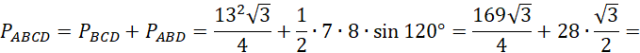 Oblicz pole czworokąta ABCD (suma pól trójkąta ABD i trójkąta równobocznego BCD):