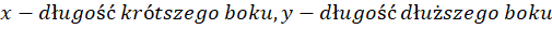 W tym zadaniu musisz określić wymiary prostokąta, jeżeli gdy dłuższy bok skrócimy o 1 cm, a dłuższy wydłużymy o 3 cm to pole będzie mniejsze o 35 cm2 od pierwotnego. Z kolei, gdyby dłuższy bok wydłużyć o 2 cm, a krótszy o 1 cm, to pole będzie większe o 28 cm2.
