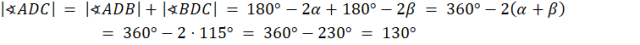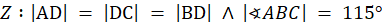 Udowodnij, że kąt ADC jest rozwarty, wiedząc, że w czworokącie ABCD zachodzi równość |AD| = |DC| = |BD| oraz że miara kąta ABC wynosi 115°.