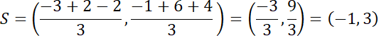 Skorzystaj ze wzoru na środek ciężkości trójkąta: