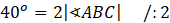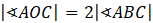 Kąt AOC jest kątem środkowym opartym na tym samym łuku co kąt wpisany ABC.