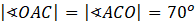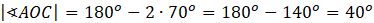 Na tej podstawie oblicz miarę kąta AOC. Skorzystaj z tego, że suma miar kątów w trójkącie wynosi