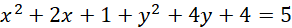Prosta przechodzi przez środki okręgów. Wyznacz punkt, w którym przecina się z ich wspólną cięciwą.