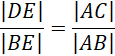 Ponieważ boki |AC| i |DE| są równoległe i trójkąty są współwierzchołkowe, trójkąty ABC i BDE są podobne. Na podstawie podobieństwa trójkątów można zapisać zależność:
