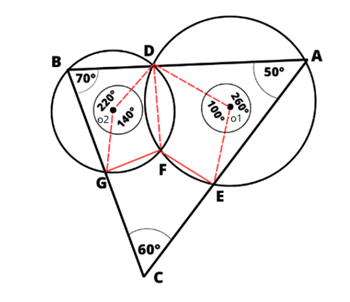 Wykonaj rysunek pomocniczy. Zauważ, że kąty: GFD i