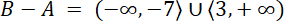 , B – zbiór wszystkich liczb rzeczywistych spełniających nierówność