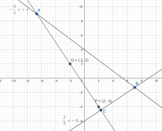 Znajdź równanie prostej AC. Współrzędne punktów P i Q podstaw pod równanie kierunkowe funkcji liniowej: