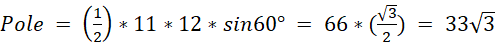 Sprawdź długość trzeciego boku i pole ze wzoru na pole z kąta zawartego.