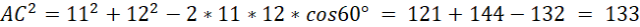 , więc AC≠11 i AC≠12 -> trójkąt nie jest równoramienny.