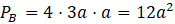 Ściany boczne są takimi samymi prostokątami o bokach długości a i 3a. Zauważ, że pole boczne graniastosłupa składa się z czterech takich ścian.