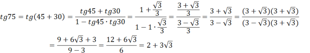W tym zadaniu musisz policzyć tangens 75°, wykorzystując wzory na funkcje trygonometryczne sumy i różnicy.