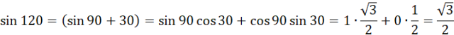 W tym zadaniu musisz policzyć sinus 120°, wykorzystując wzory na funkcje trygonometryczne sumy i różnicy.