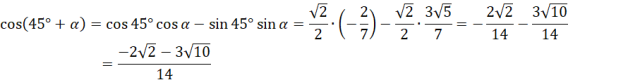 W tym zadaniu musisz policzyć cos (45° + α), jeśli cos α =