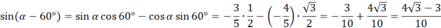 W tym zadaniu musisz policzyć sin (α – 60°), jeśli sin α =