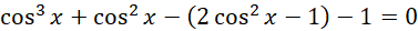 W tym zadaniu musisz rozwiązać równanie cos3x + cos2x – cos 2x = 1.