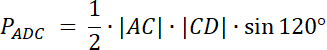 W pierwszym kroku oblicz wartość kąta |∡DCB|, następnie wyznacz wzory pól trójkątów ADC i DBC, a na koniec wyznacz stosunek tych pól. Wykorzystaj w tym zadaniu wzór na pole trójkąta z funkcją trygonometryczną sinus.