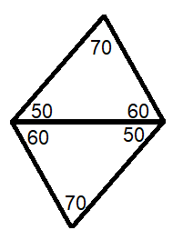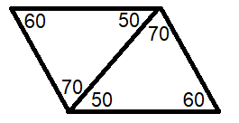 Znajdź wszystkie możliwe równoległoboki zbudowane z takich trójkątów – na przekątnej umieść boki o tej samej długości tak, aby kąty różnych miar były obok siebie. Oblicz miary ich kątów dodając do siebie miary kątów leżących obok siebie.