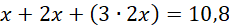 Wypisz wszystkie dane, które są podane w zadaniu. Następnie ułóż równanie na podstawie wagi żółwia, która jest niewiadomą x. Waga kotki to dwukrotność wagi żółwia, zaś waga psa to trzykrotność wagi kotki, czyli trzykrotność dwukrotności wagi żółwia, więc 6x. Wszystkie zwierzęta ważą razem 10,8 kg, dlatego należy dodać ich wagi do siebie.