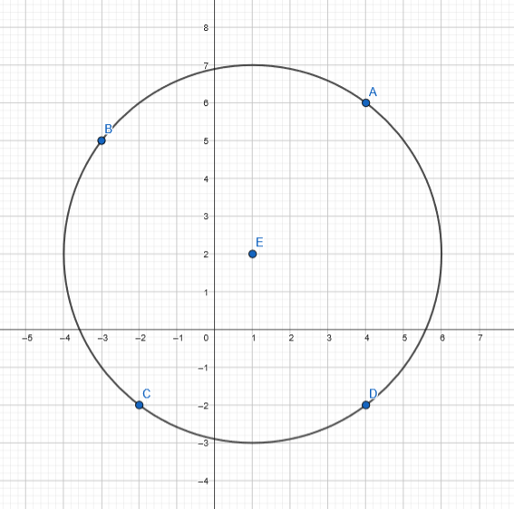 W tym zadaniu musisz pokazać, że podane punkty należą do okręgu o środku (1, 2).