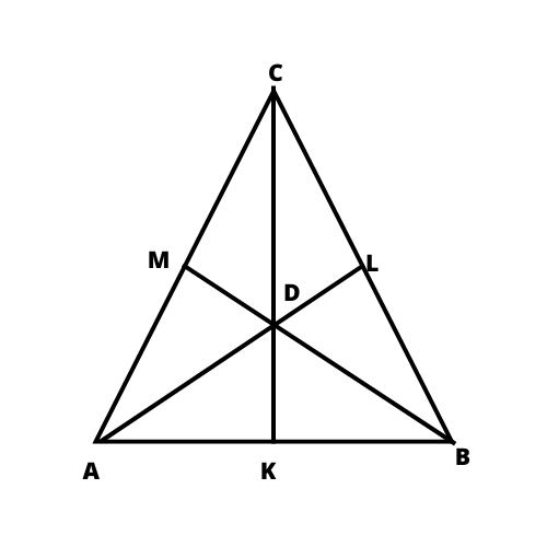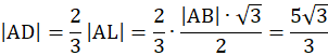 W tym zadaniu oblicz długość odcinka |AD|, wiedząc, że wysokości trójkąta równobocznego ABC przecinają się w punkcie D, a |AB| = 5.