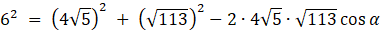 Skorzystaj z twierdzenia cosinusów: