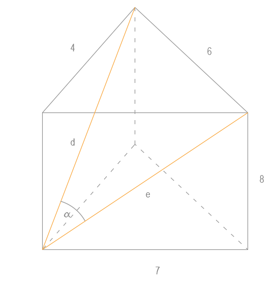 Znajdź miarę kąta α w graniastosłupie.