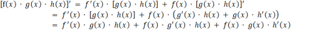 W tym zadaniu musisz znaleźć wzór na pochodną iloczynu trzech funkcji.