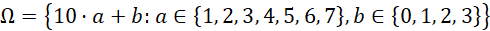 Rozpatrz liczby 2 – cyfrowe, których pierwsza cyfra jest losowana ze zbioru {1, 2, 3, 4, 5, 6, 7}, a druga ze zbioru {0, 1, 2, 3}. Wyznacz prawdopodobieństwo utworzenia liczby mniejszej niż 53.
