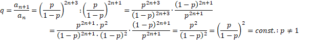 Iloraz q jest stały dla dowolnego i zatem ciąg jest geometryczny.