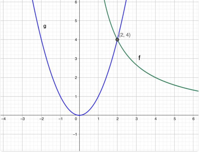Po narysowaniu tych funkcji zauważ, że wykresy przecinają się w punkcie (2, 4)