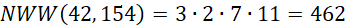 Najpierw oblicz NWW (42, 154). Rozłóż te liczby na czynniki pierwsze. Aby rozłożyć liczbę na czynniki pierwsze, dziel daną liczbę przez liczby pierwsze do momentu, aż uzyskasz wynik 1. Policz, ile razy każda z liczb wystąpiła w każdym z rozkładów i wybierz największą z otrzymanych wartości. Najmniejsza wspólna wielokrotność będzie równa iloczynowi różnych czynników pierwszych podniesionych do potęgi równej maksymalnej ilości ich wystąpień. Następnie oblicz NWD (72, 462). Znajdź rozkład obu liczb na czynniki pierwsze. Następnie wypisz wszystkie liczby, które pojawiają się w obu rozkładach. Iloczyn tych liczb będzie największym wspólnym dzielnikiem.