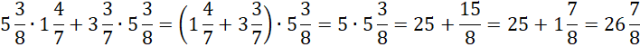 Zauważ, że oba składniki dodawania są iloczynem o wspólnym czynniku. Wyłącz ten wspólny czynnik przed nawias. Dodaj do siebie w nawiasie pozostałe czynniki.