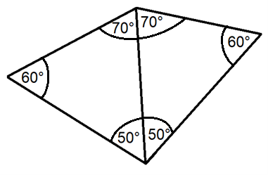 Znajdź wszystkie możliwe deltoidy zbudowane z takich trójkątów – na przekątnej umieść boki o tej samej długości tak, aby kąty o tych samych miarach były obok siebie. Oblicz miary ich kątów dodając do siebie miary kątów leżących obok siebie.