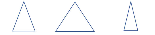 Narysuj trójkąt równoramienny, który między ramionami ma kąt ostry, czyli o mierze mniejszej niż 90º. Zauważ, że im mniejszy kąt, to wierzchołek znajduje się dalej od podstawy.