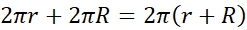 Następnie zapisz sumę obwodów dwóch mniejszych okręgów.
