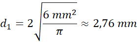 Następnie oblicz średnice podanych pól przekroju podstawiając je do wzoru.